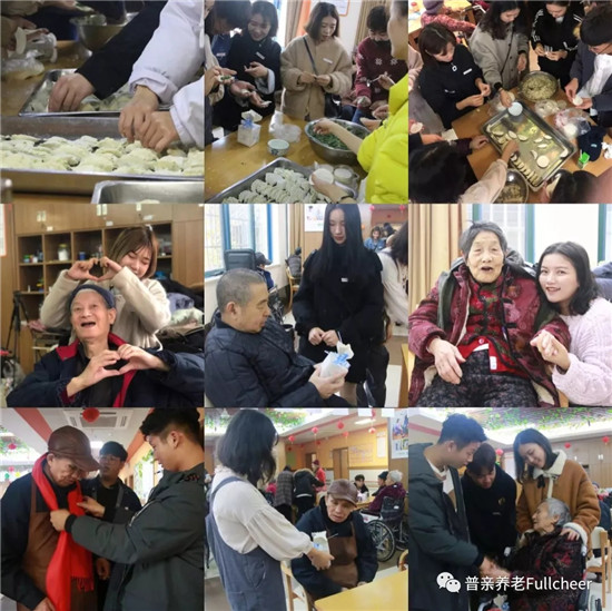 莘莘学子的到来,让本就热闹的节日更添人气。大家一起包饺子,体验动手的乐趣,一起吃饺子,感受冬至的温暖,有的老人没办法自主进食,同学们便耐心地为老人喂食。