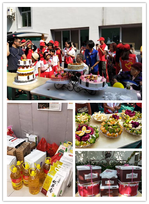▲养护院及爱心志愿者们为老人准备的节日物资