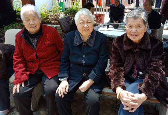 天气好的时候,护理员会带爷爷奶奶们会出来晒太阳